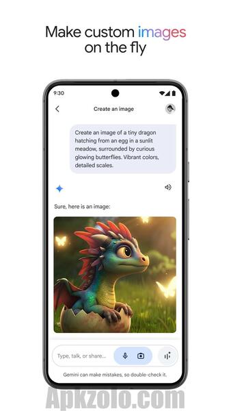 So to utilize Gemini Pro Mod APK at its best, you should exploit the multimodal input. Voice commands let you add, complete, postpone, sort, and delete tasks on the fly, without ever having to type. Configure custom reminders and connect assistant to your Google services to work more efficiently. Real -time image generation, quickly realize your creative ideas into real visual arts.